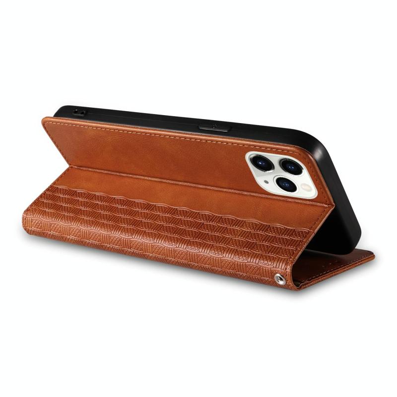 For iPhone 11 Pro Max Braided Embossed Strong Magnetic Leather Phone Case(Brown)