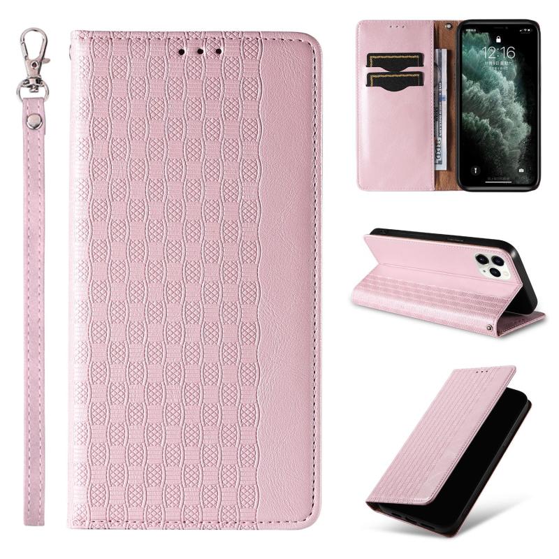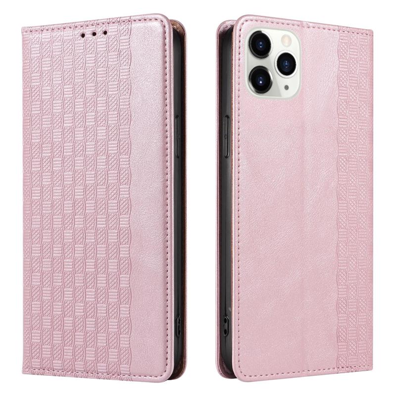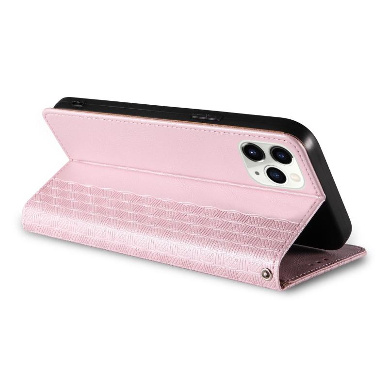 For iPhone 11 Pro Max Braided Embossed Strong Magnetic Leather Phone Case(Rose Gold)