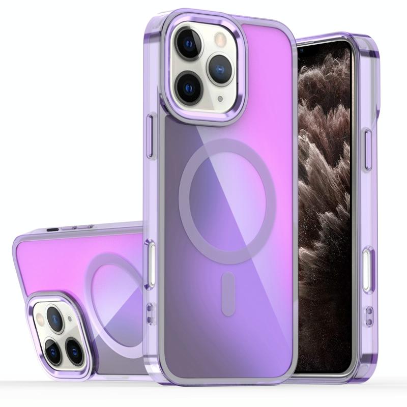 For iPhone 11 Pro Max Bright Shadow Magsafe Discoloration Phone Case(Purple)