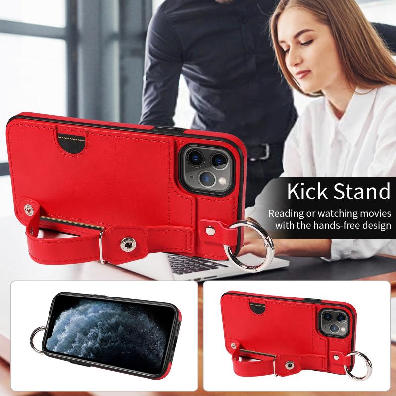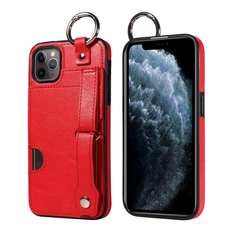 For iPhone 11 Pro Max Calf Texture Wrist Card Slot Ring Phone Case(Red)