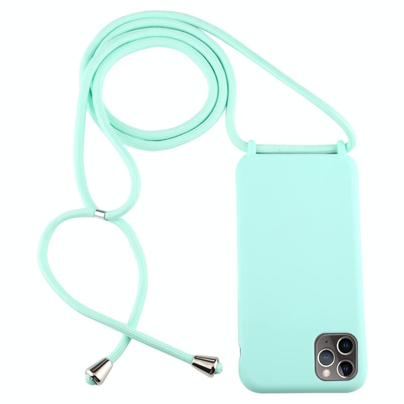 For iPhone 11 Pro Max Candy Color TPU Protective Case with Lanyard(Mint Green)