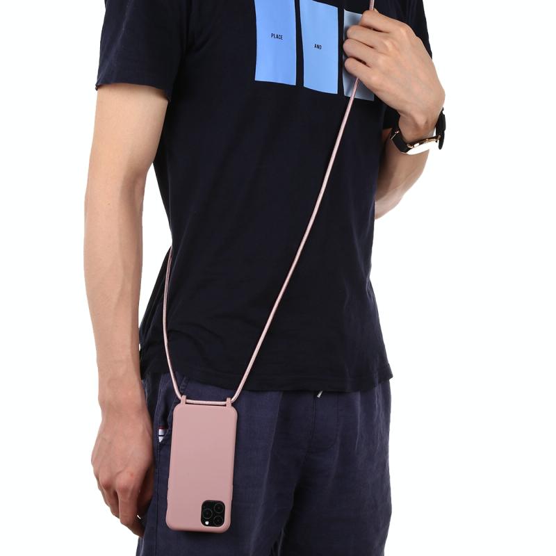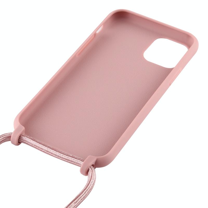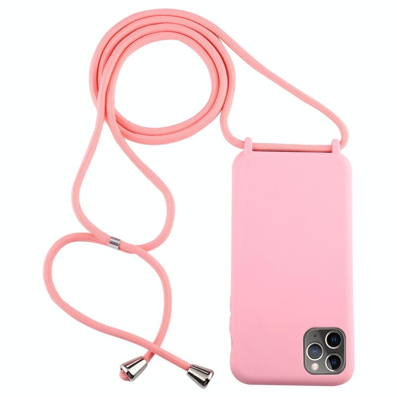 For iPhone 11 Pro Max Candy Color TPU Protective Case with Lanyard(Pink)