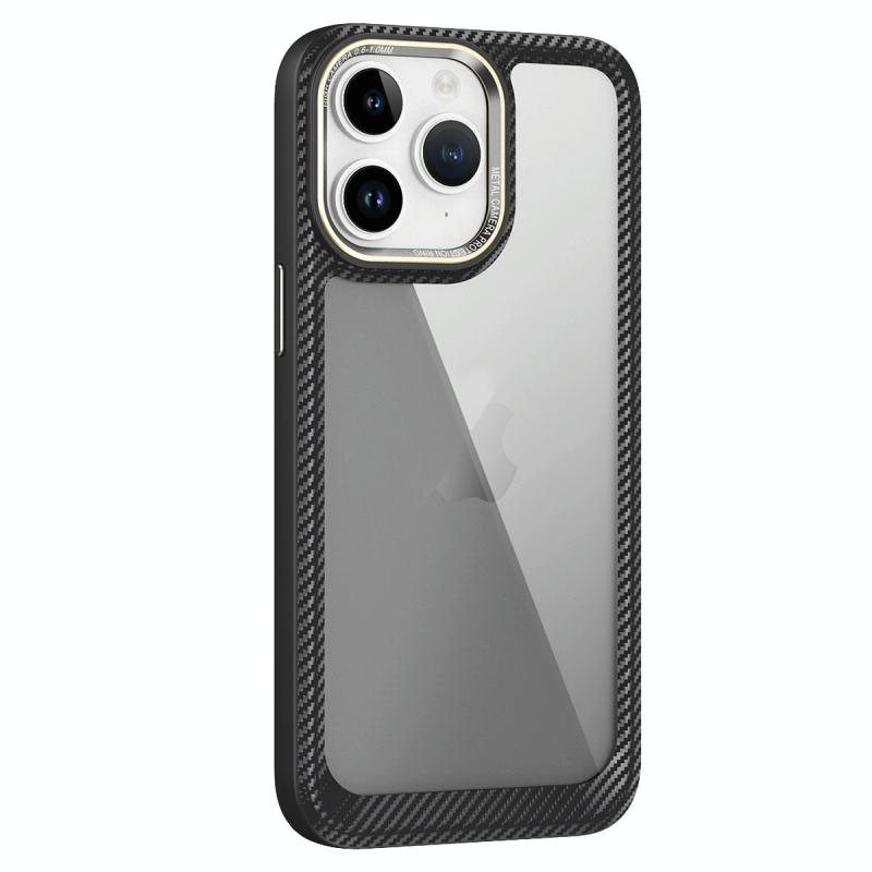 For iPhone 11 Pro Max Carbon Fiber Transparent Back Panel Phone Case(Black + Transparent Black)
