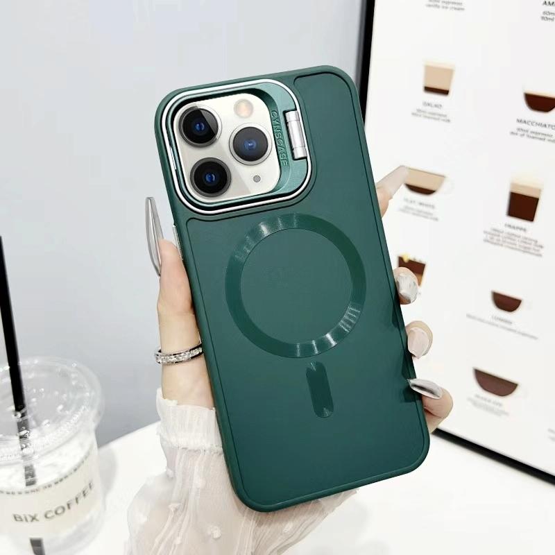 For iPhone 11 Pro Max CD Texture Frosted MagSafe Lens Holder Phone Case(Green)