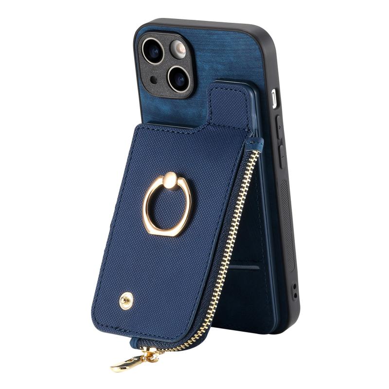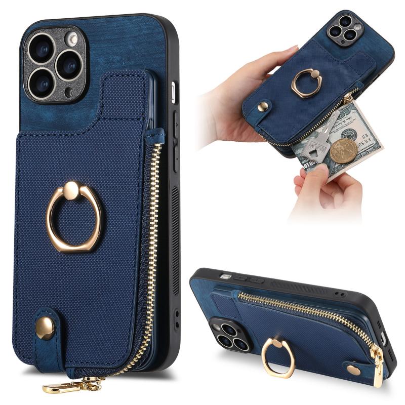 For iPhone 11 Pro max Cross Leather Ring Vertical Zipper Wallet Back Phone Case(Blue)