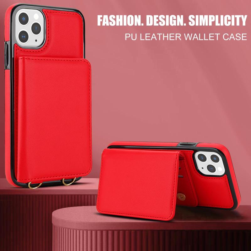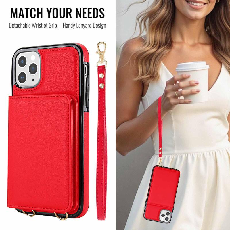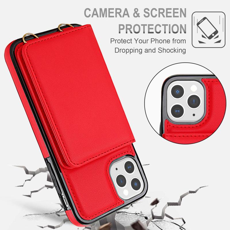 For iPhone 11 Pro Max Crossbody Dual-buckle Wallet RFID Back Leather Phone Case(Red)