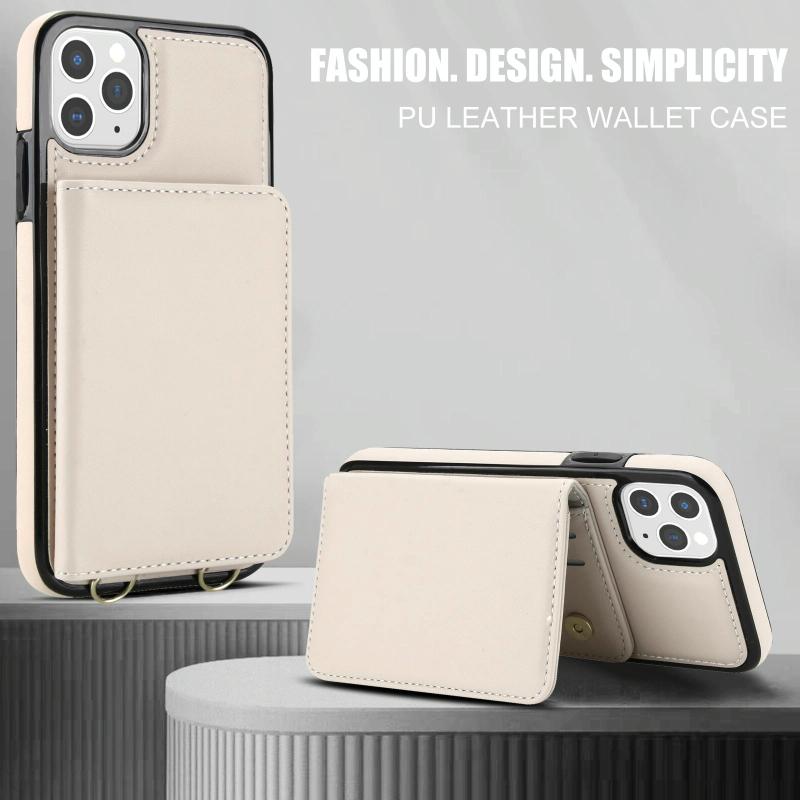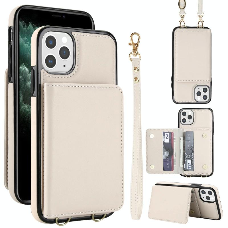 For iPhone 11 Pro Max Crossbody Dual-buckle Wallet RFID Back Leather Phone Case(White)