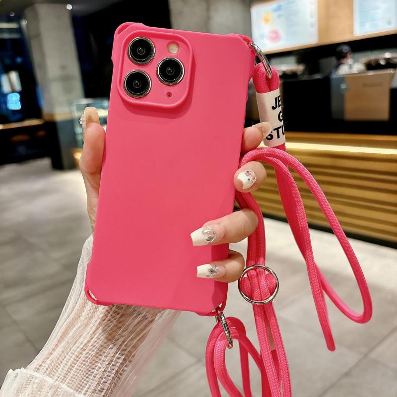 For iPhone 11 Pro Max Crossbody Liquid TPU Four Corner Shockproof Phone Case(Rose Red)