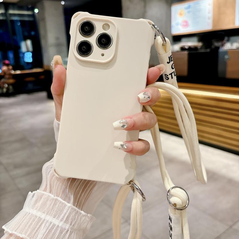 For iPhone 11 Pro Max Crossbody Liquid TPU Four Corner Shockproof Phone Case(White)