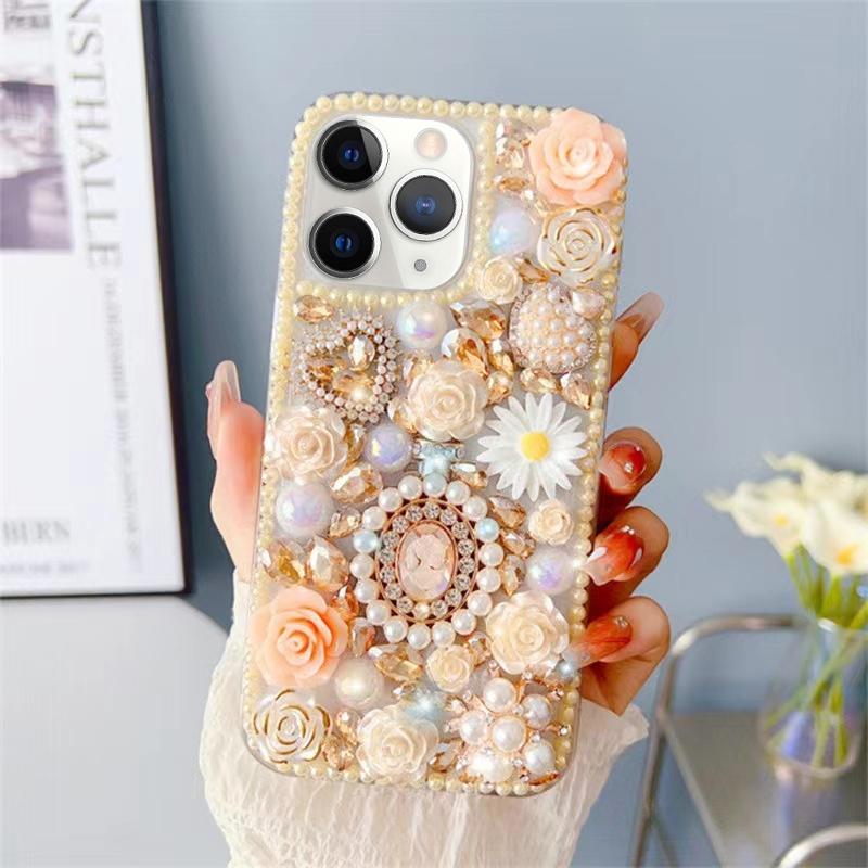 For iPhone 11 Pro Max Diamond Inlaid Rose PC Phone Case(Yellow)