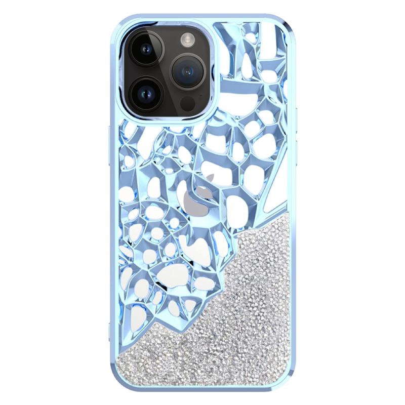 For iPhone 11 Pro Max Diamond Style Hollow Heat Dissipation Electroplated TPU Phone Case(Blue)
