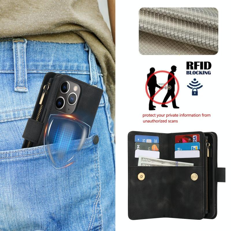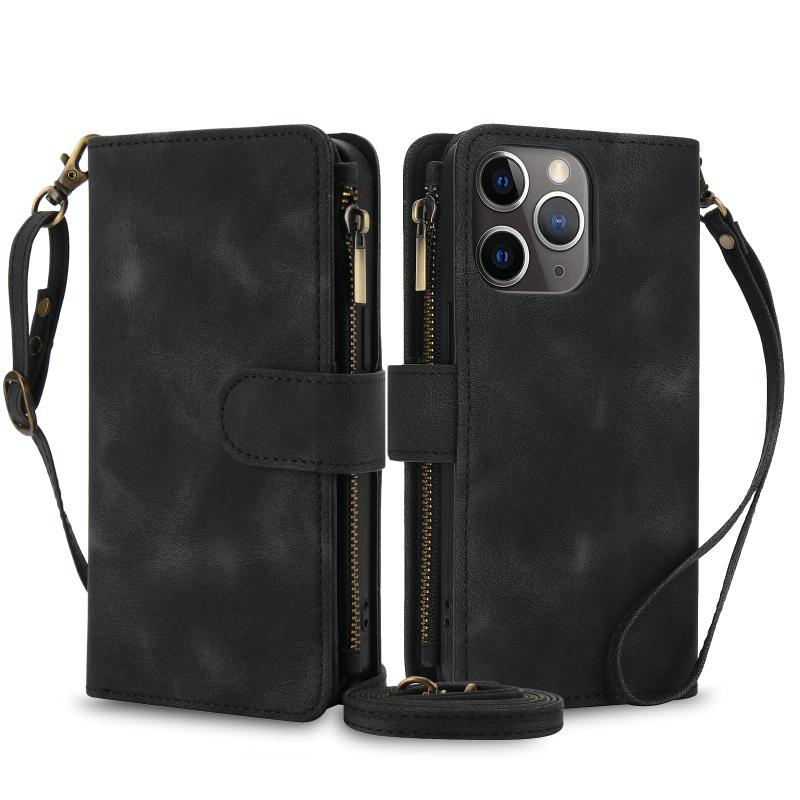 For iPhone 11 Pro Max Dream 9-Card Zipper Wallet RFID Leather Phone Case with Lanyard(Black)