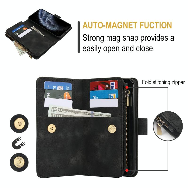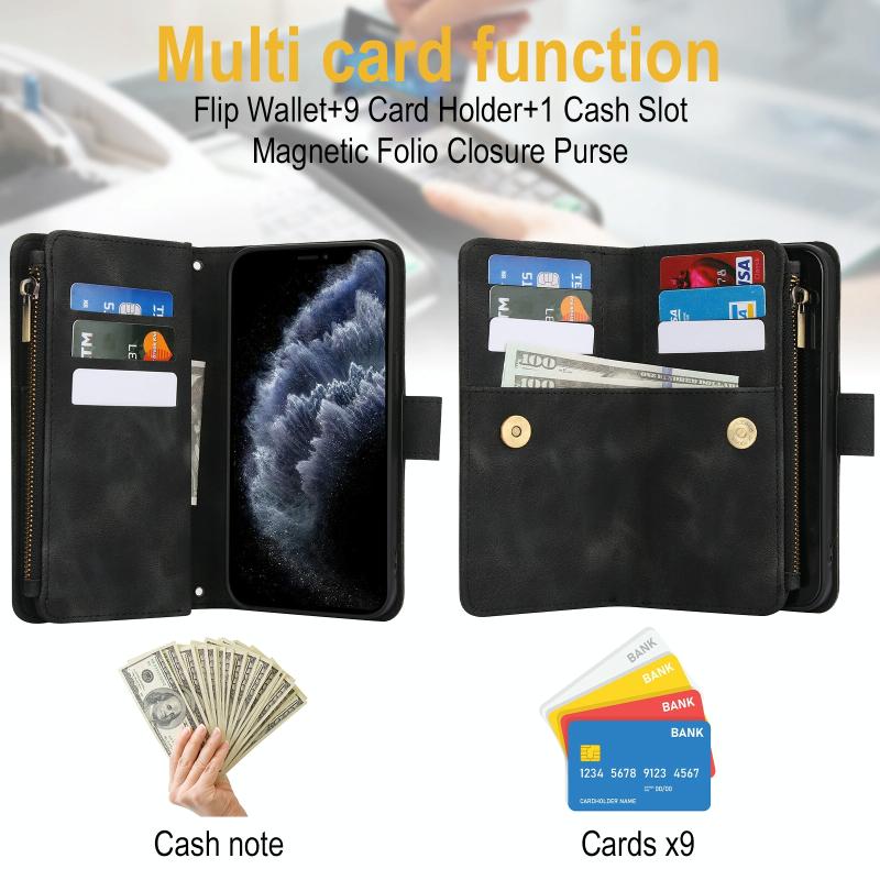 2. Multi-card wallet function: 9 card slots and 1 cash compartment with zipper to store your credit cards, cash or small banknotes for daily needs.