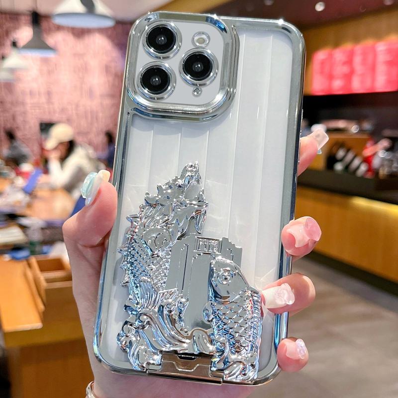 For iPhone 11 Pro Max Electroplated Carp Leaping Dragon Gate Pattern TPU Phone Case(Silver)
