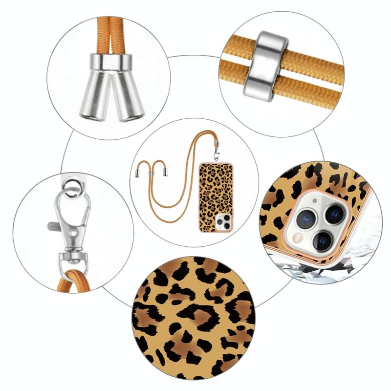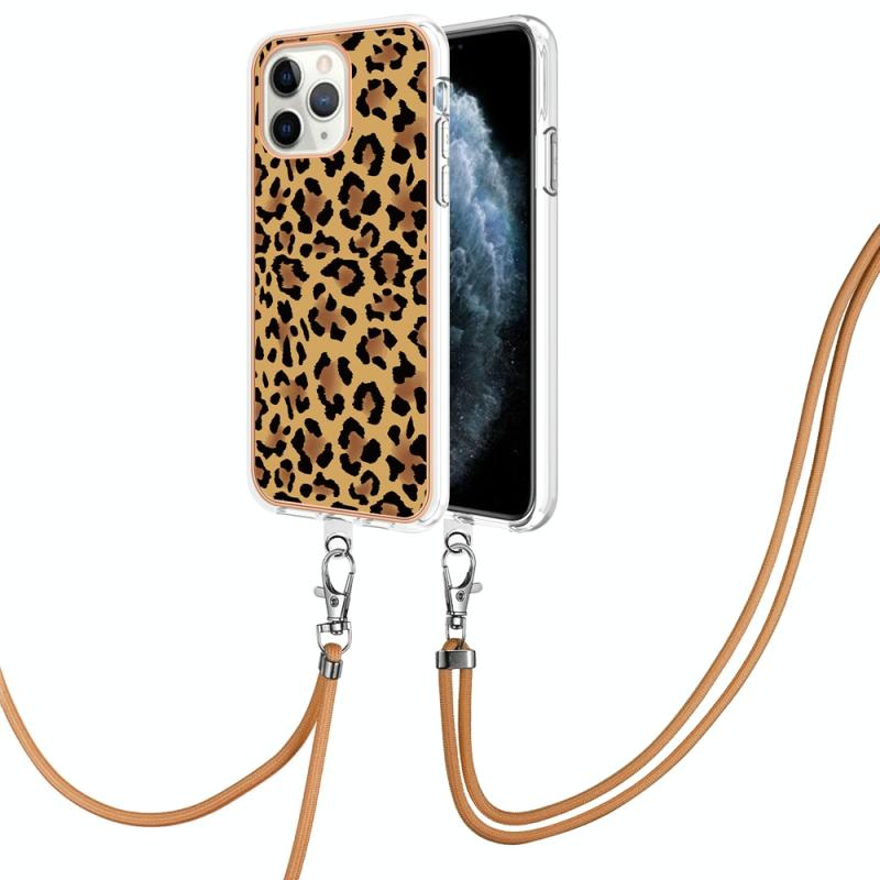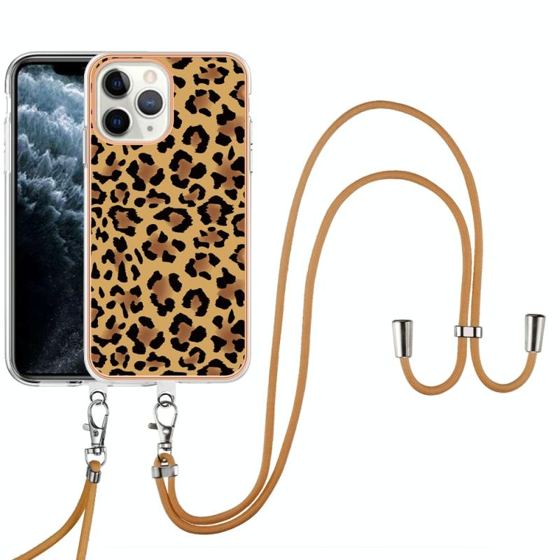 For iPhone 11 Pro Max Electroplating Dual-side IMD Phone Case with Lanyard(Leopard Print)