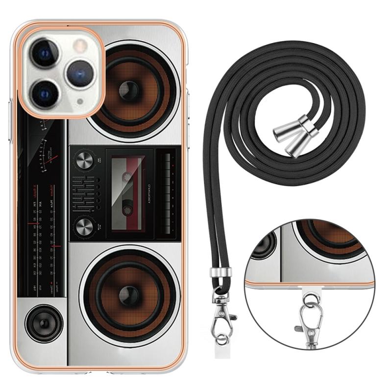 For iPhone 11 Pro Max Electroplating Dual-side IMD Phone Case with Lanyard(Retro Radio)