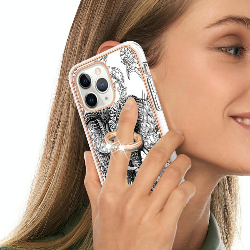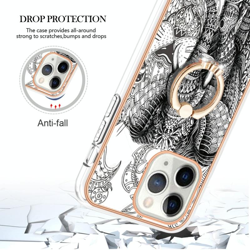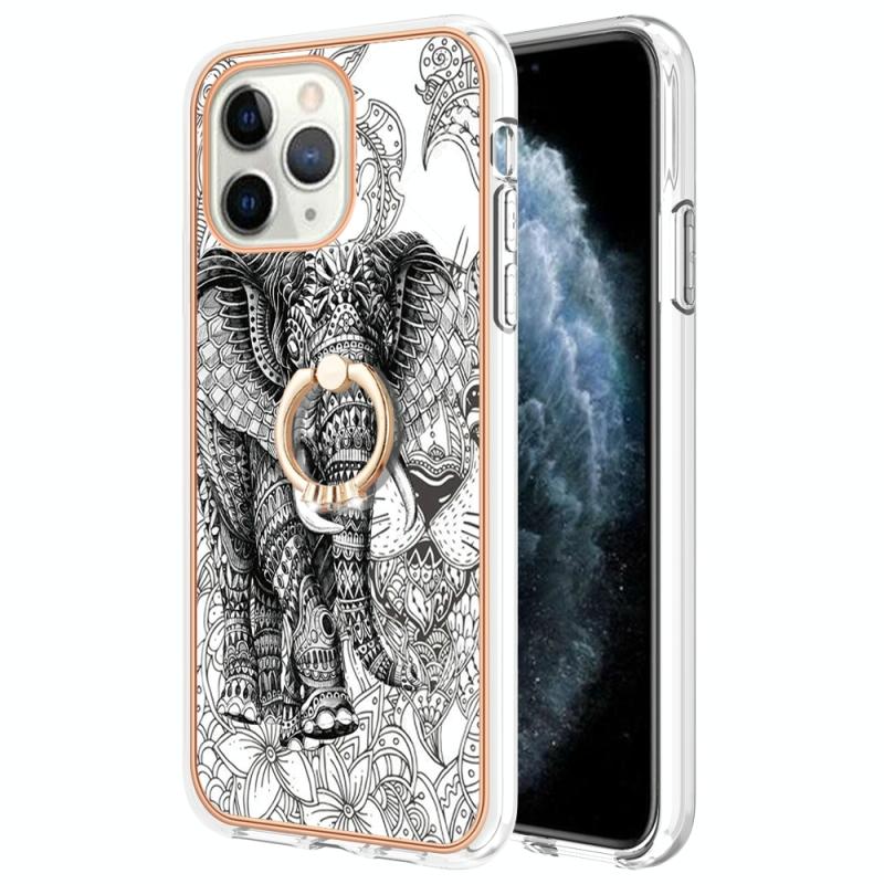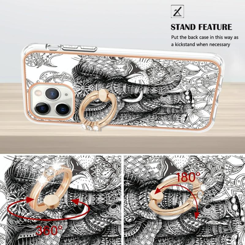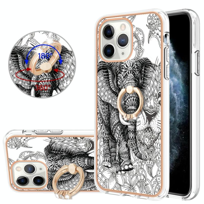 For iPhone 11 Pro Max Electroplating Dual-side IMD Phone Case with Ring Holder(Totem Elephant)