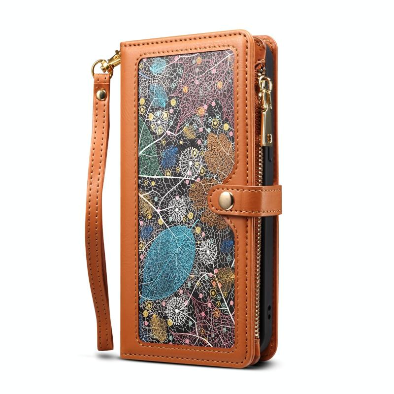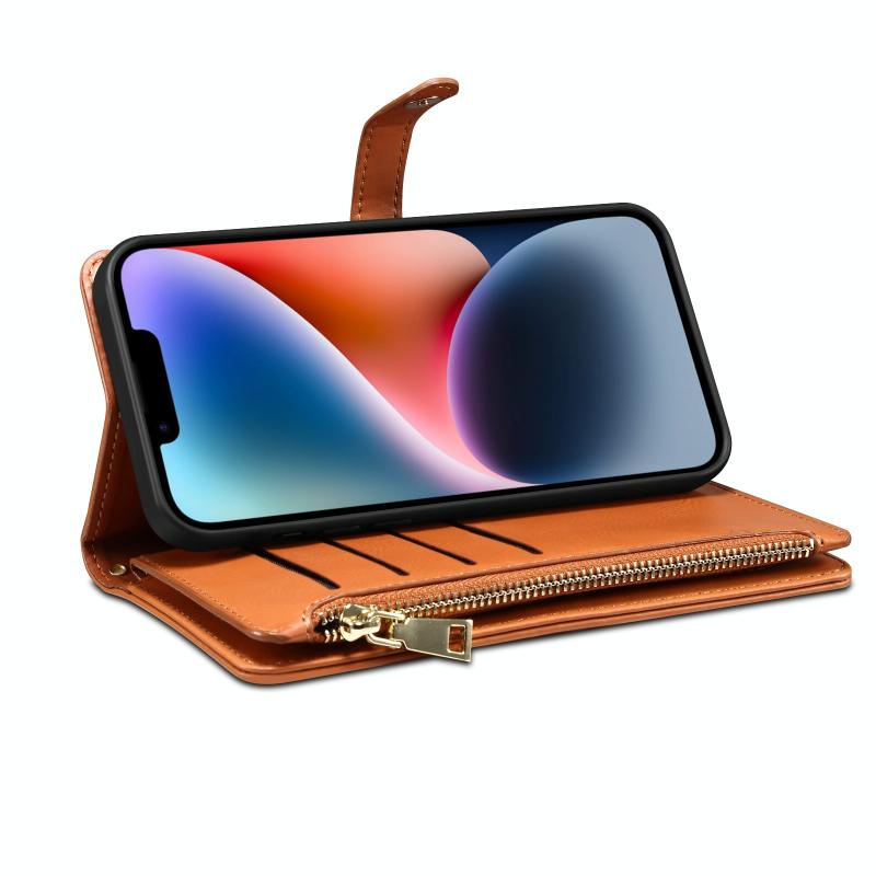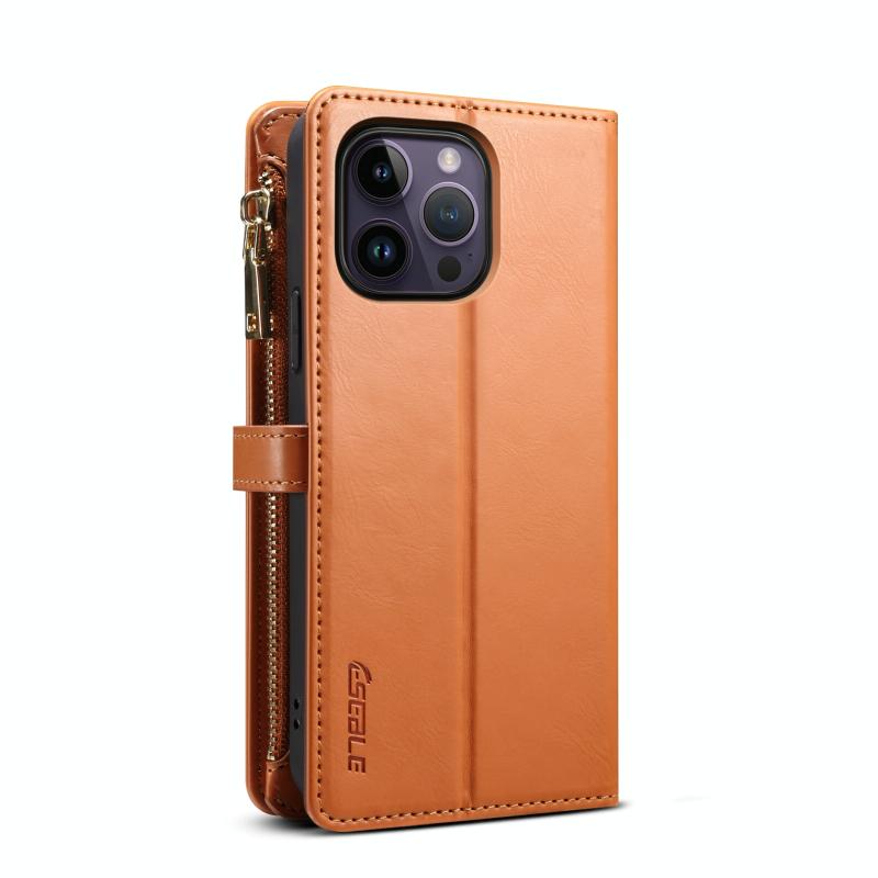For iPhone 11 Pro Max ESEBLE Star Series Lanyard Zipper Wallet RFID Leather Case(Brown) (ESEBLE)