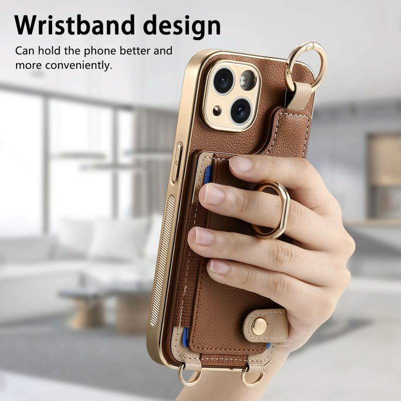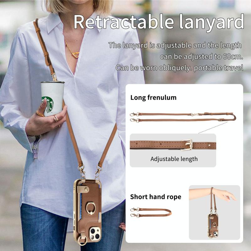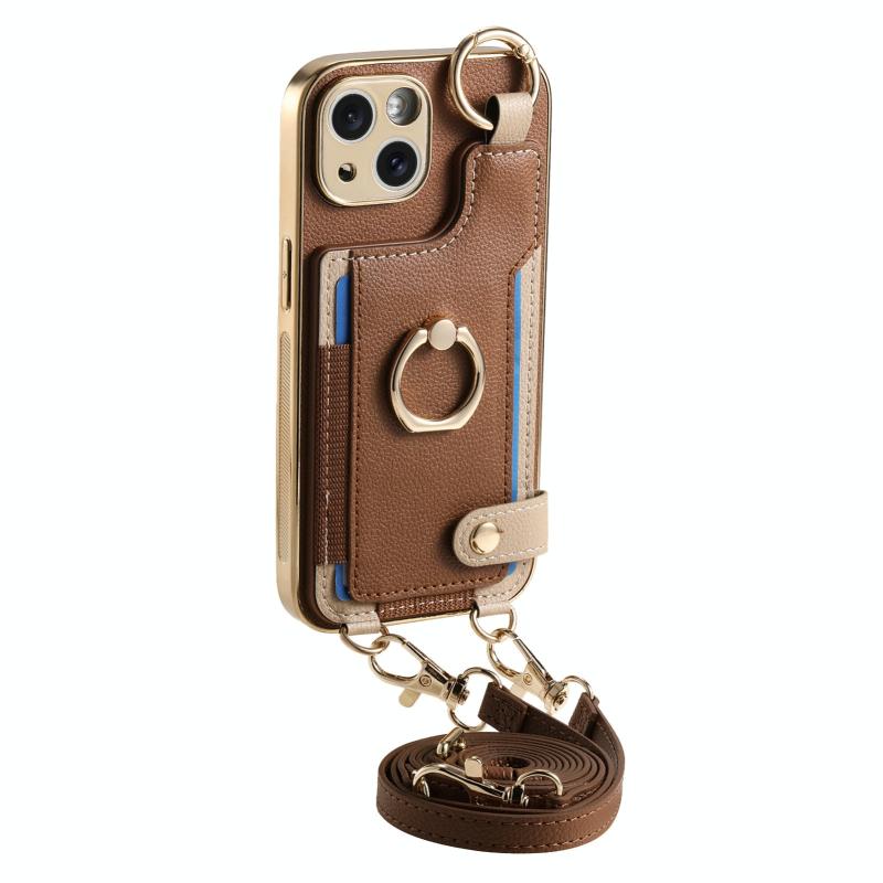 For iPhone 11 Pro Max Fashion Ring Card Bag Phone Case with Hang Loop(Brown)