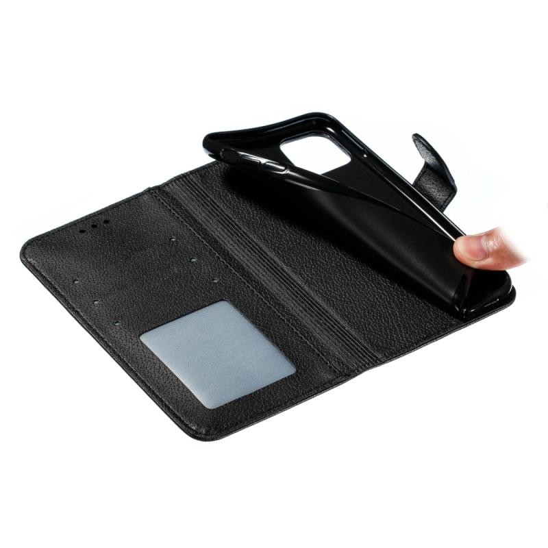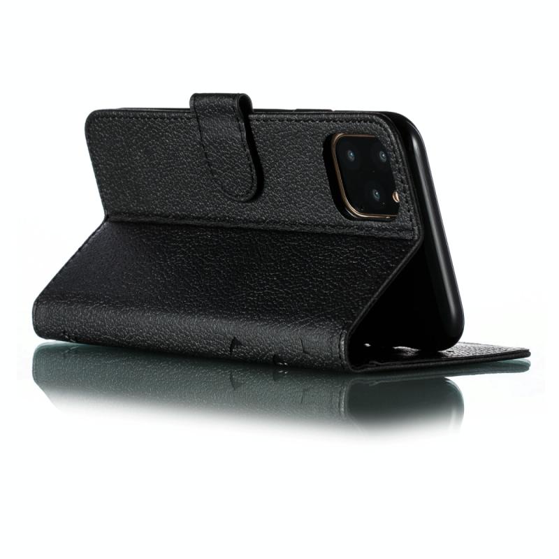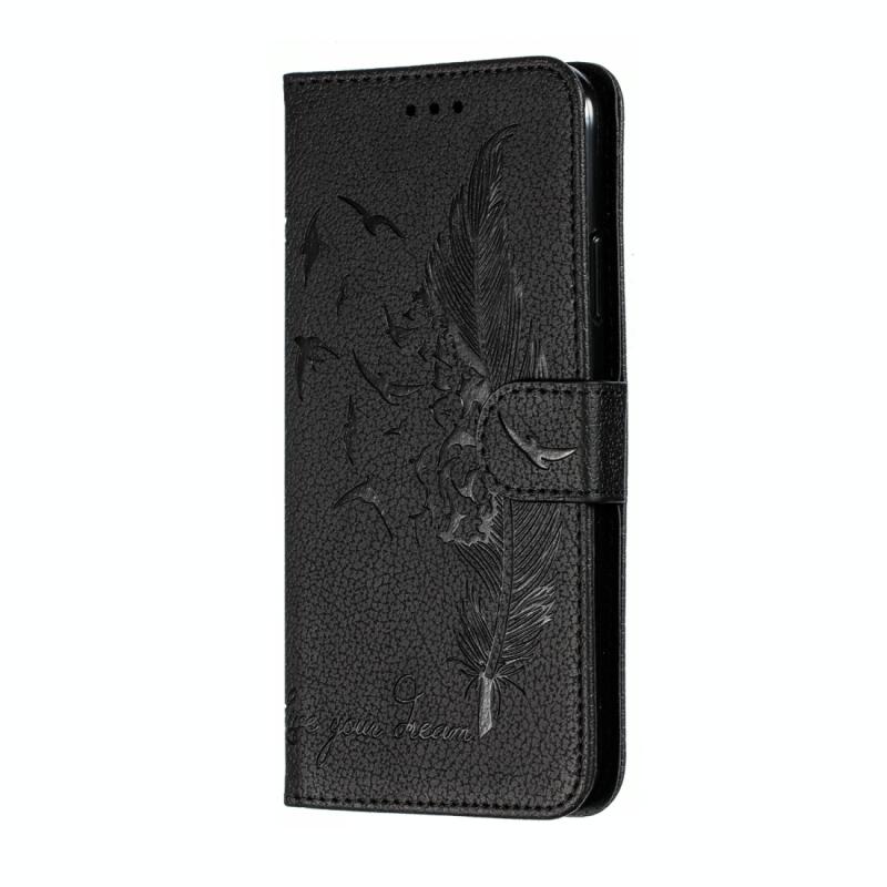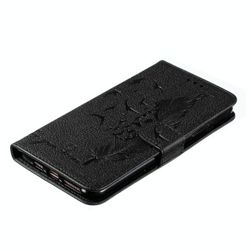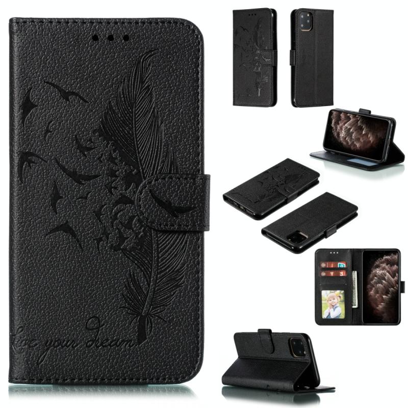 For iPhone 11 Pro Max Feather Pattern Litchi Texture Horizontal Flip Leather Case with Wallet & Holder & Card Slots (Black)