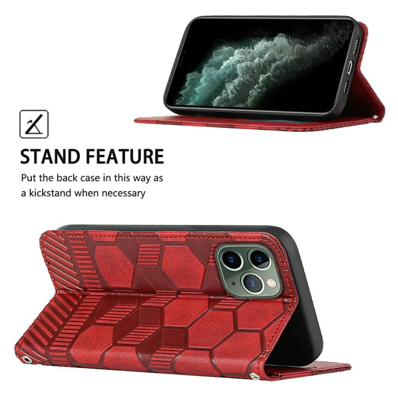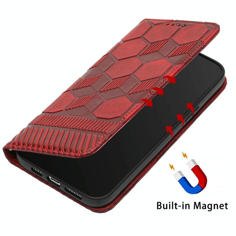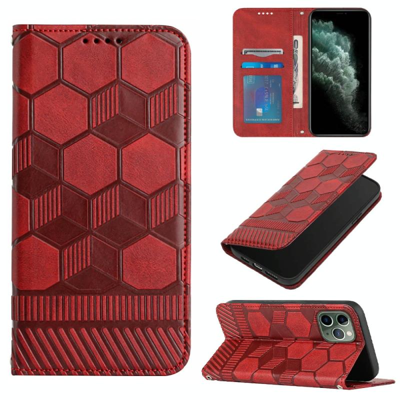 For iPhone 11 Pro Max Football Texture Magnetic Leather Flip Phone Case (Red)