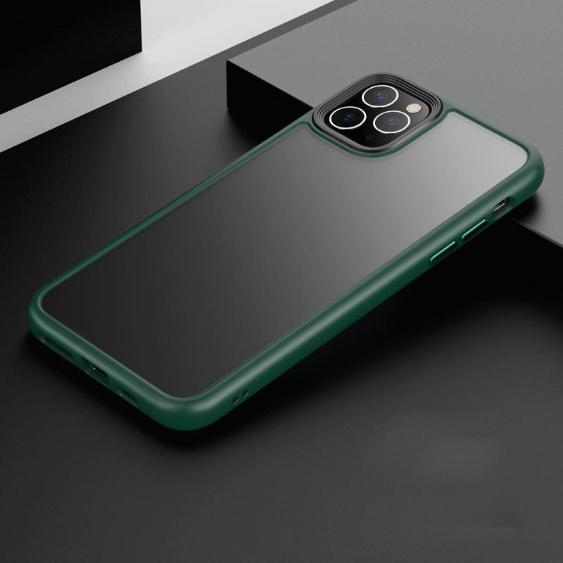 For iPhone 11 Pro Max Frosted Back Shockproof Phone Case (Deep Green)