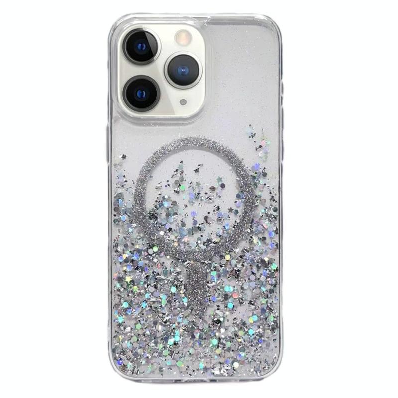 For iPhone 11 Pro Max Gradient Glitter MagSafe PC Hybrid TPU Phone Case(Gradient Silver)