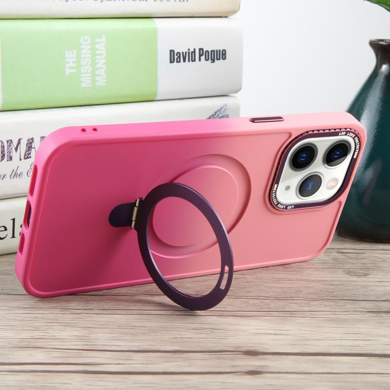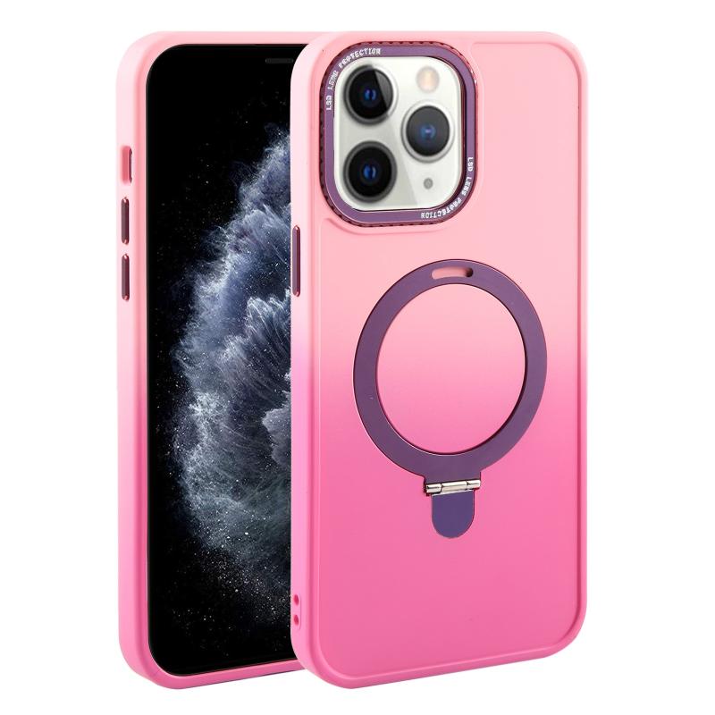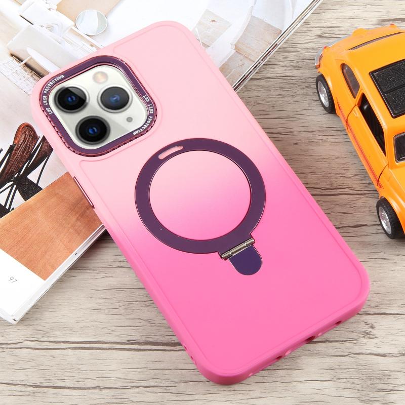 For iPhone 11 Pro Max Gradient MagSafe Holder Liquid TPU Hybrid PC Phone Case(Pink Red)