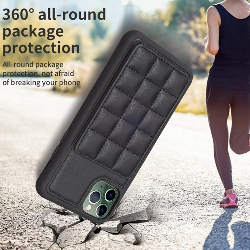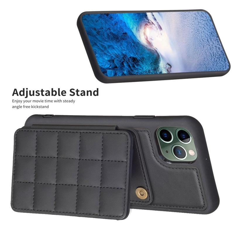 For iPhone 11 Pro Max Grid Card Slot Holder Phone Case(Black)