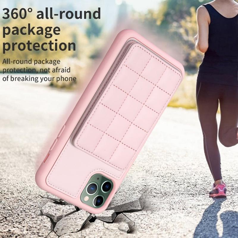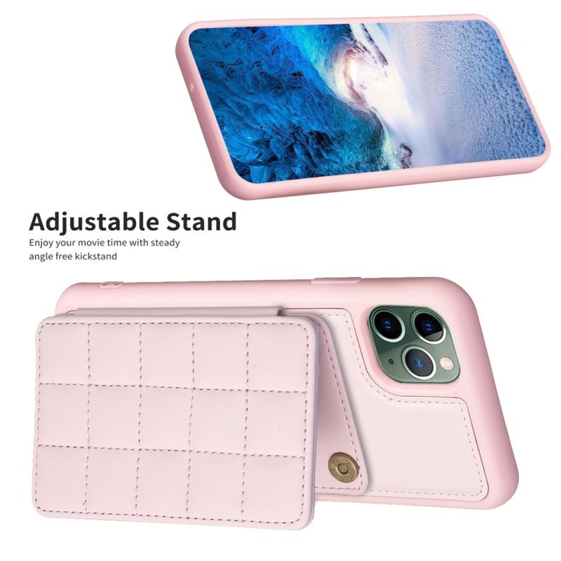 For iPhone 11 Pro Max Grid Card Slot Holder Phone Case(Pink)