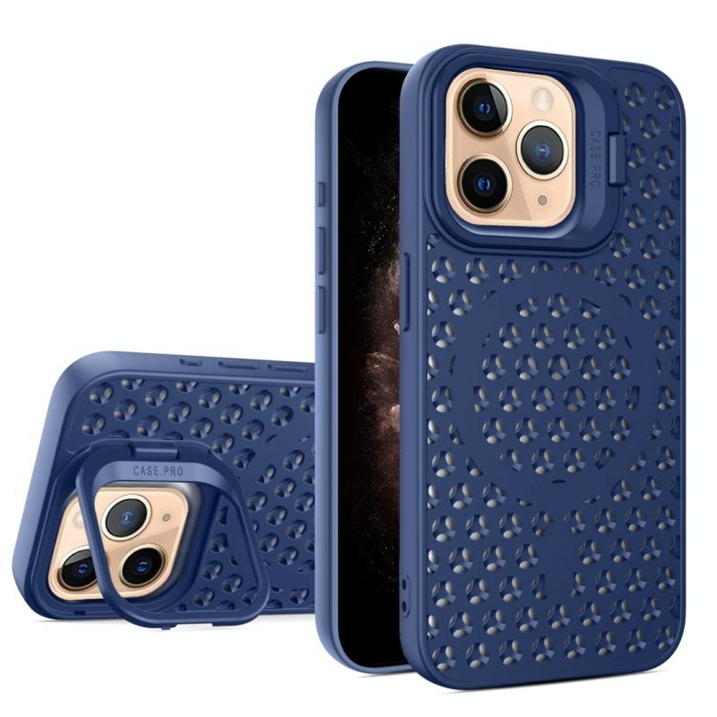 For iPhone 11 Pro Max Hollow Cooling Lens Holder MagSafe Magnetic TPU Phone Case(Blue)