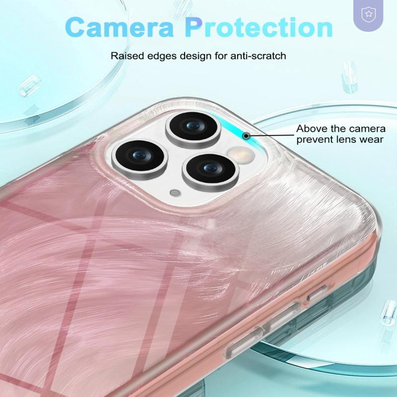 For iPhone 11 Pro Max IMD Gradient Feather PC Hybrid TPU Phone Case(Light Pink)