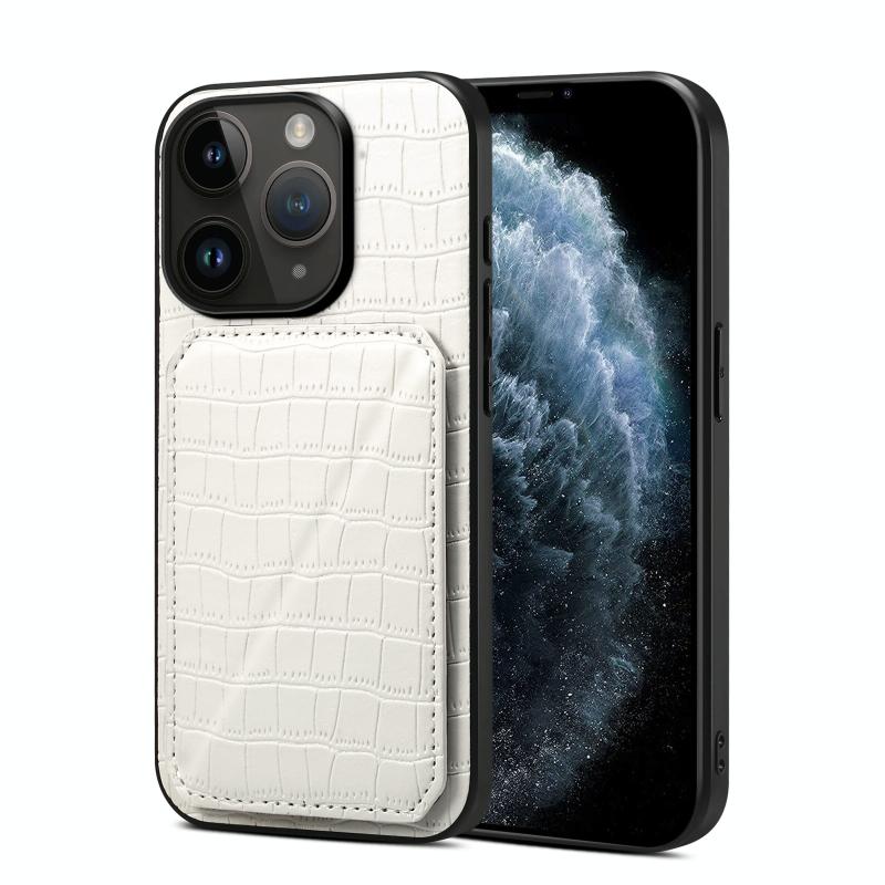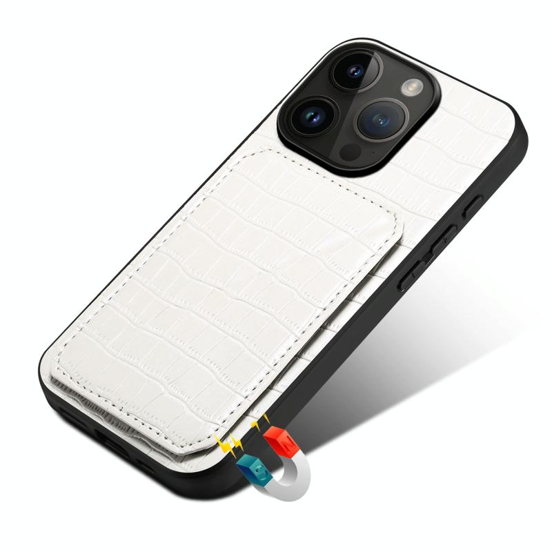 For iPhone 11 Pro Max Imitation Crocodile Leather Back Phone Case with Holder(White)
