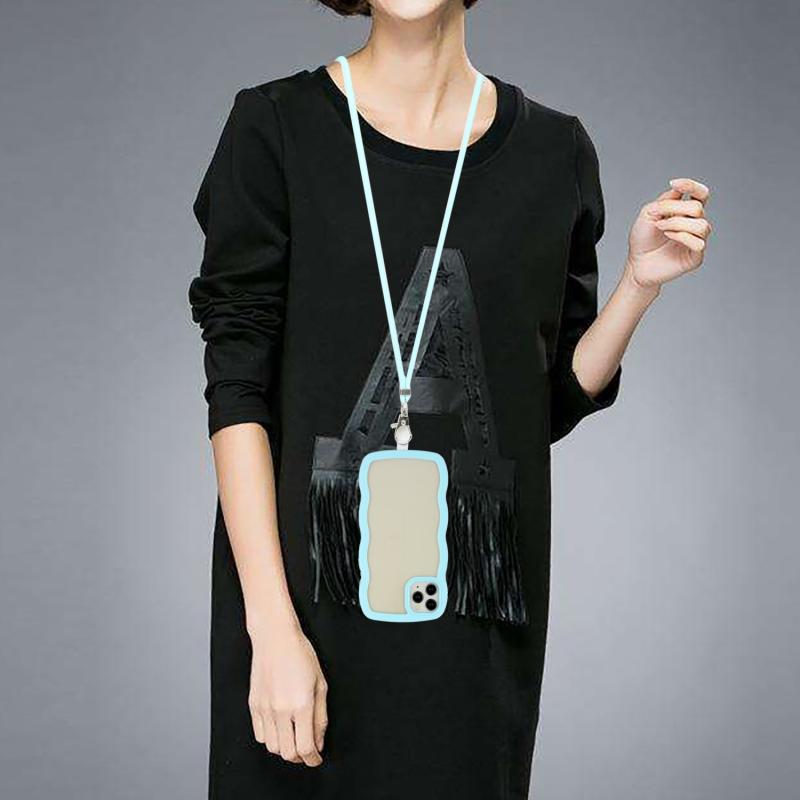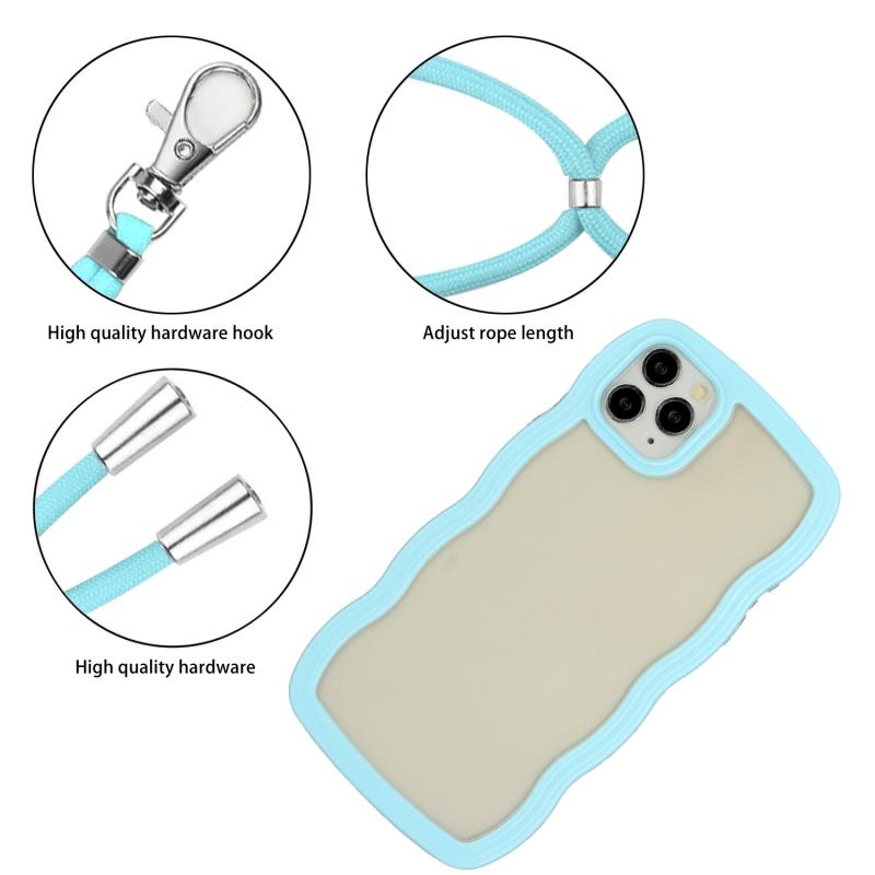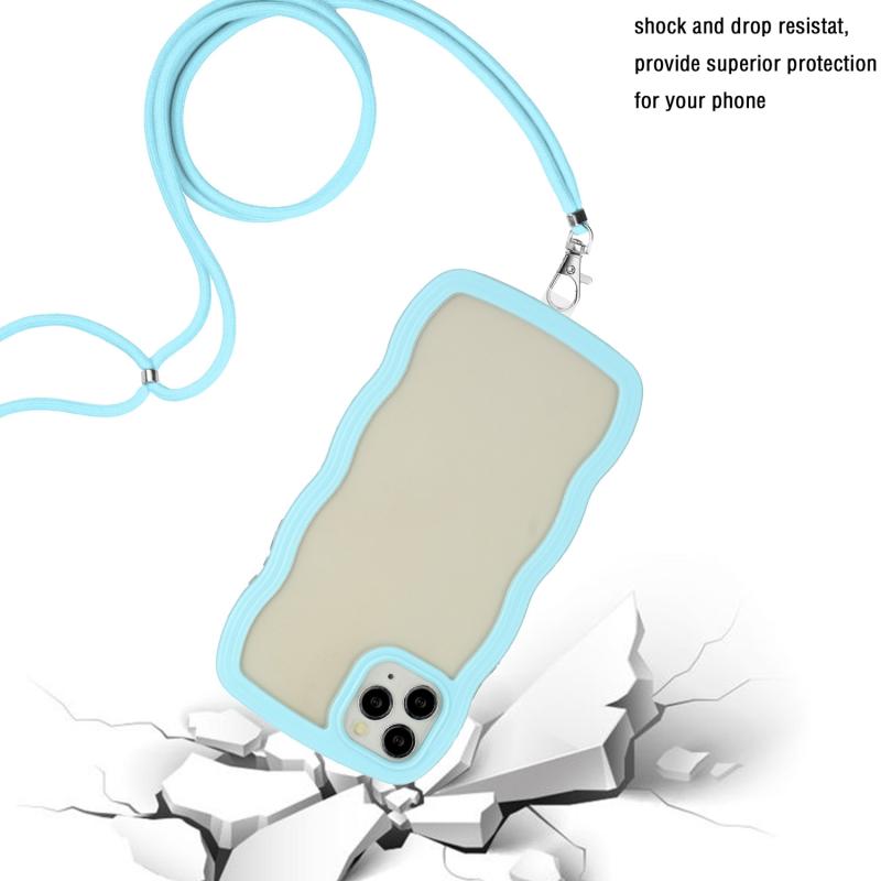 For iPhone 11 Pro Max Lanyard Candy Color Wave TPU Clear PC Phone Case (Blue)