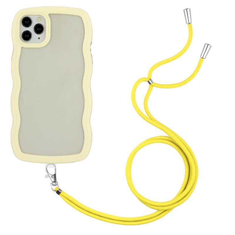 For iPhone 11 Pro Max Lanyard Candy Color Wave TPU Clear PC Phone Case (Yellow)