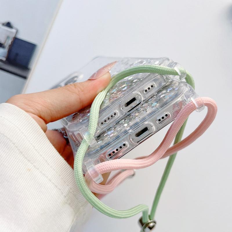 For iPhone 11 Pro Max Lanyard Glitter Epoxy Clear Phone Case (Purple)