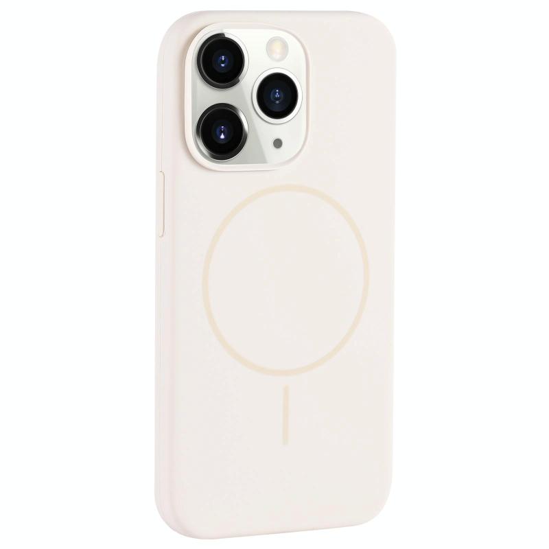 For iPhone 11 Pro Max Large Hole Camera MagSafe Liquid Silicone Full Coverage Phone Case(Antique White)