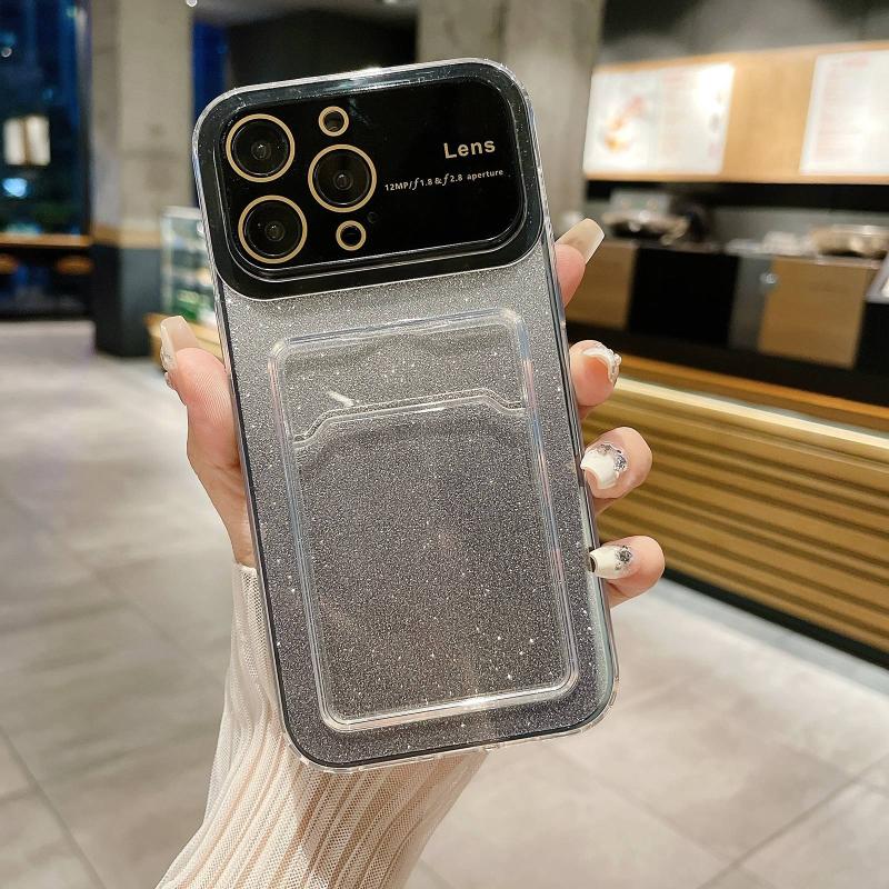 For iPhone 11 Pro Max Large Window Gradient Glitter Phone Case with Card Slot(Black)