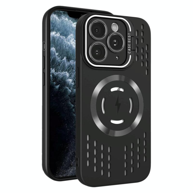 For iPhone 11 Pro Max Lens Holder MagSafe Cooling Phone Case(Black)