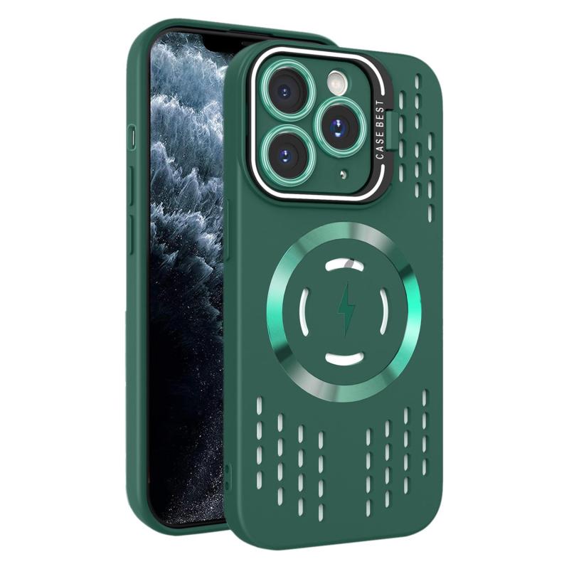 For iPhone 11 Pro Max Lens Holder MagSafe Cooling Phone Case(Dark Green)