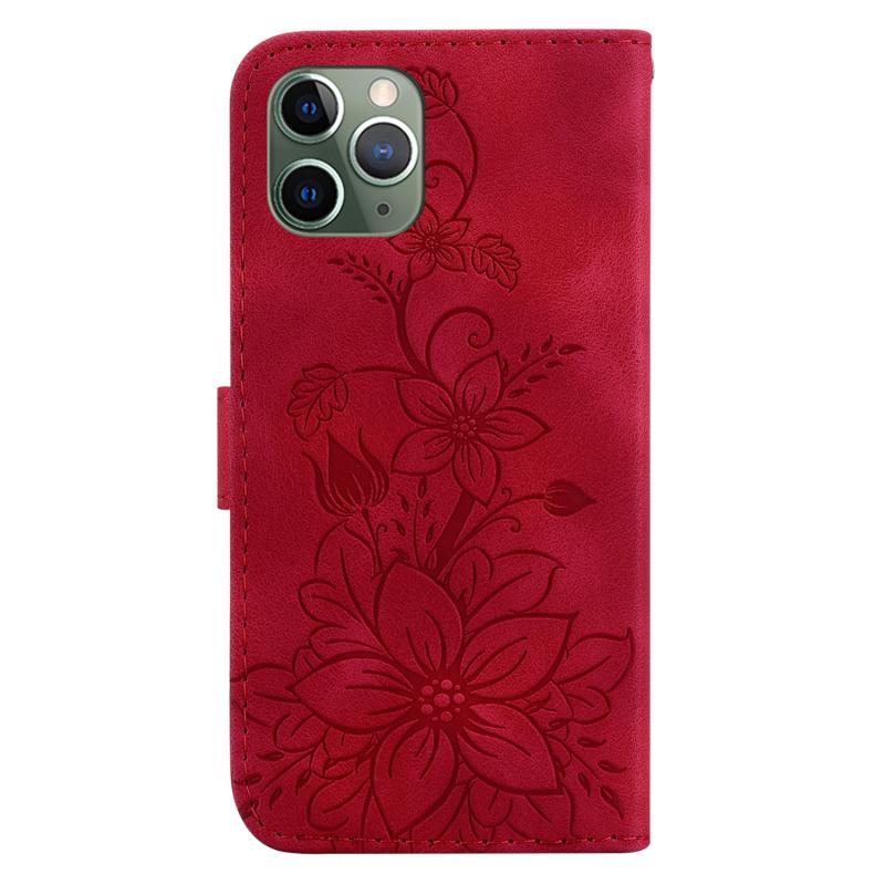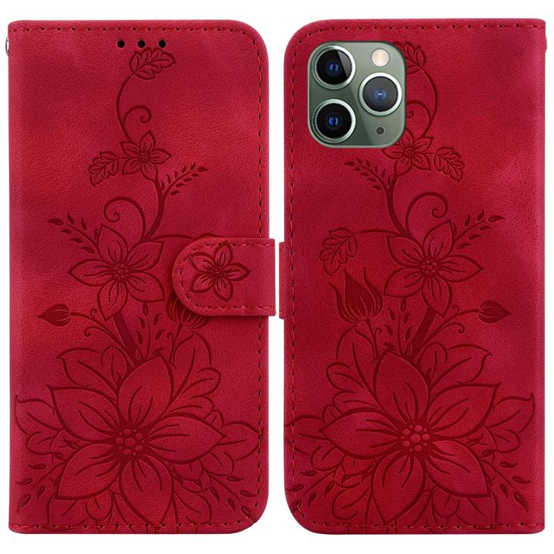 For iPhone 11 Pro Max Lily Embossed Leather Phone Case(Red)