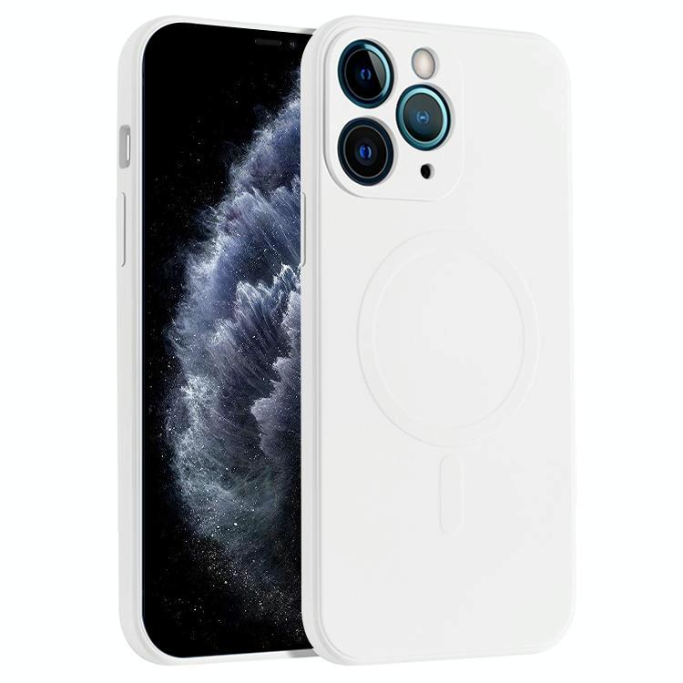 For iPhone 11 Pro Max Liquid Silicone Full Coverage Magsafe Phone Case (White)