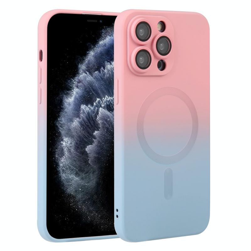 For iPhone 11 Pro Max Liquid TPU Silicone Gradient MagSafe Phone Case(Pink Blue)