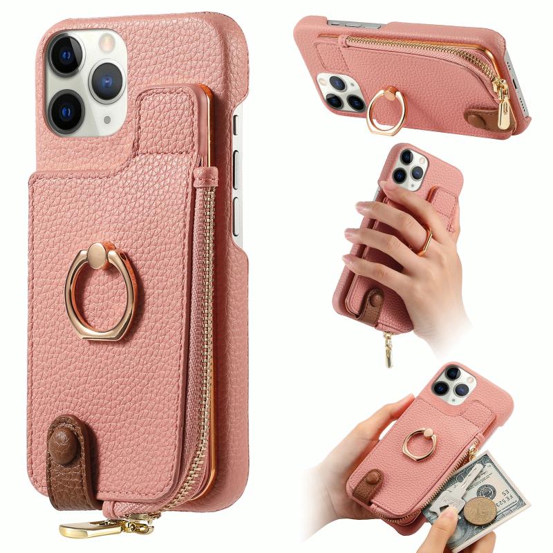 For iPhone 11 Pro Max Litchi Leather Oil Edge Ring Zipper Wallet Back Phone Case(Pink)