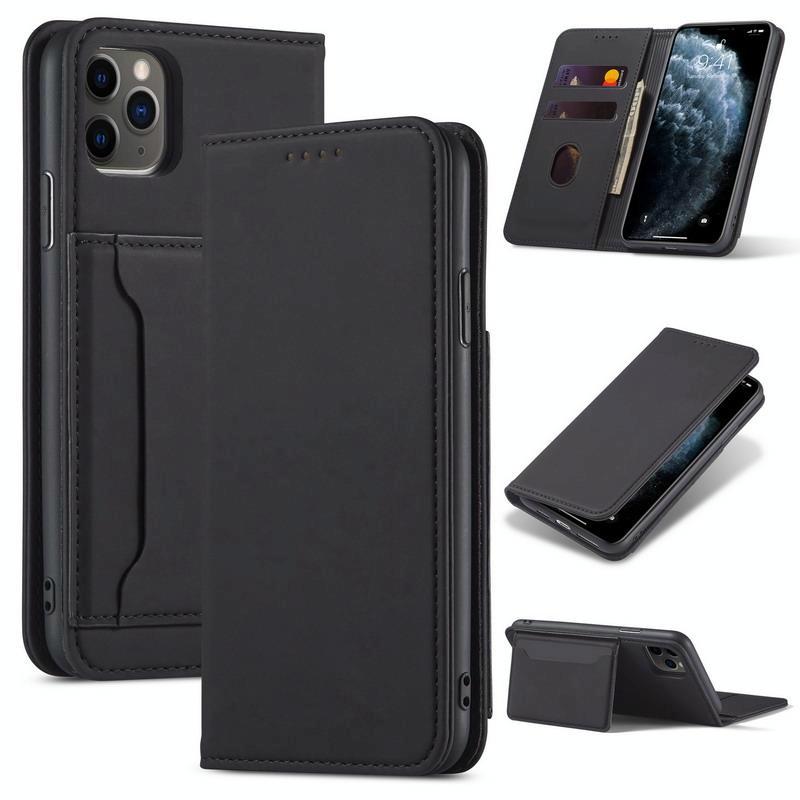 For iPhone 11 Pro Max Magnetism Skin Feel Card Holder Leather Phone Case(black)