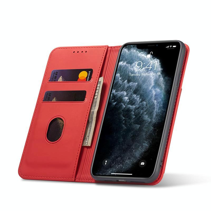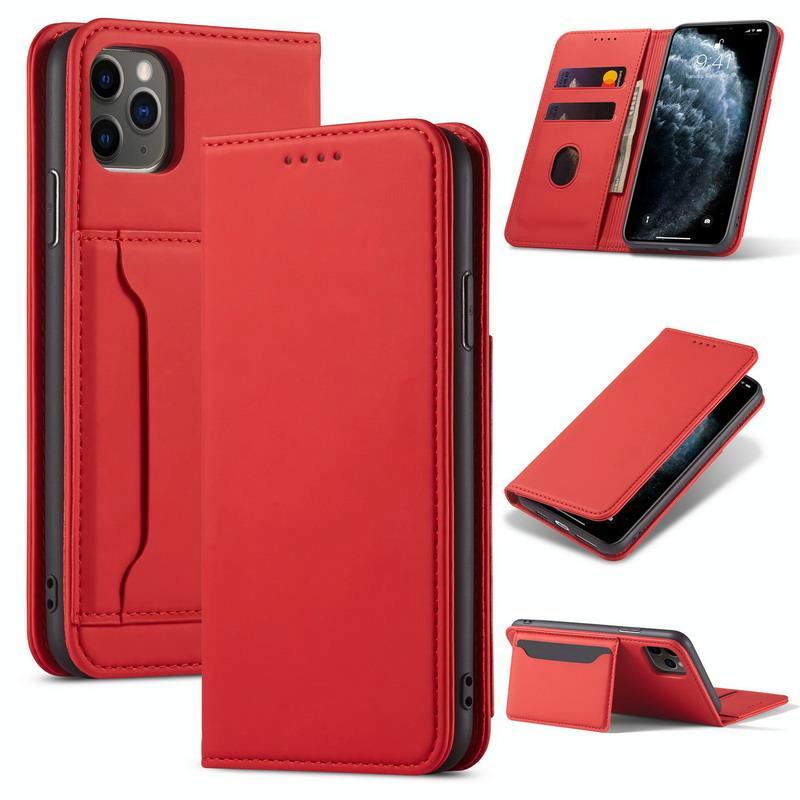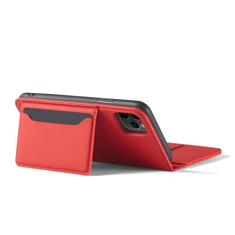 For iPhone 11 Pro Max Magnetism Skin Feel Card Holder Leather Phone Case(red)