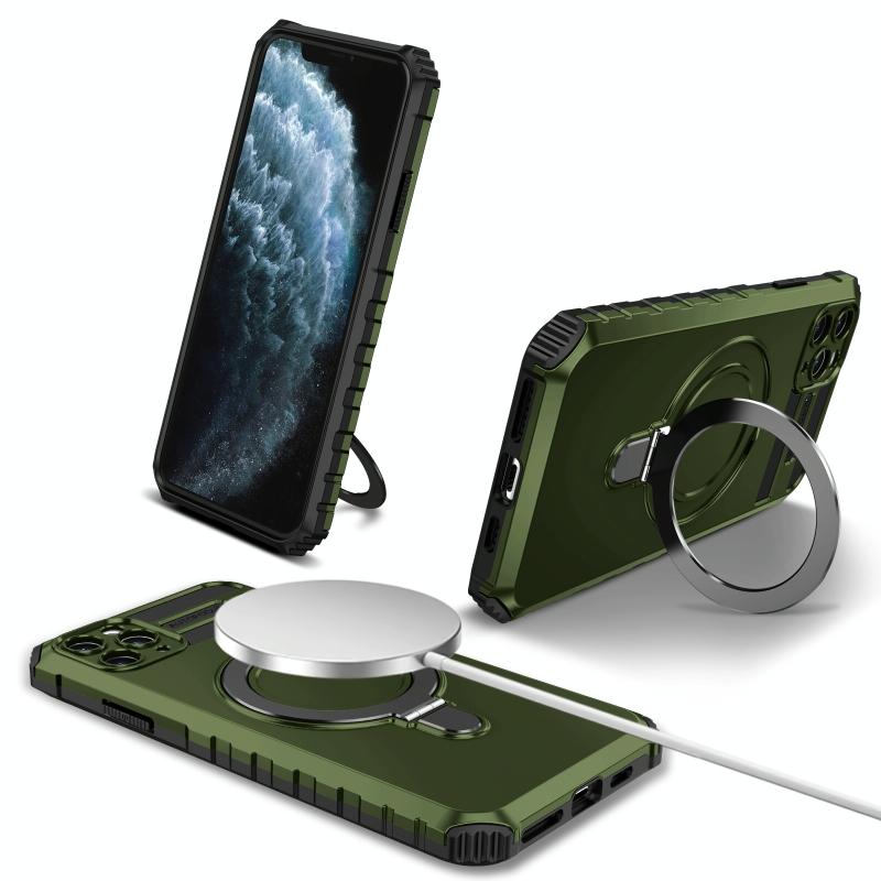 For iPhone 11 Pro Max MagSafe Magnetic Holder Phone Case(Green)