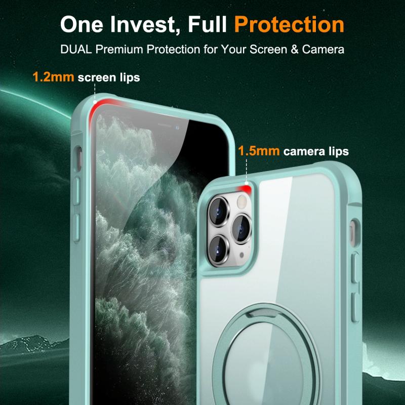 For iPhone 11 Pro Max MagSafe Magnetic Rotating Holder Phone Case(Lake Blue)