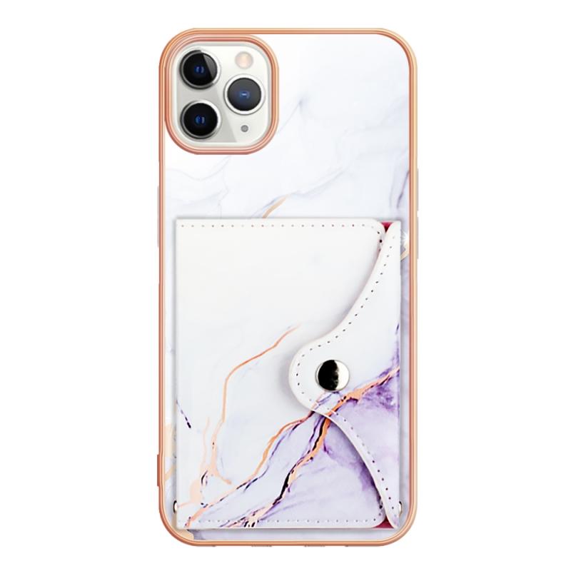 For iPhone 11 Pro Max Marble Pattern IMD Card Slot Phone Case(White Purple)