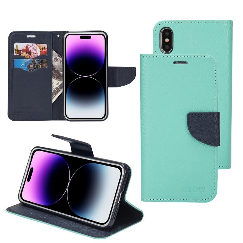For iPhone 11 Pro Max Mercury Contrast Color Splicing Leather Phone Case(Mint Color)
